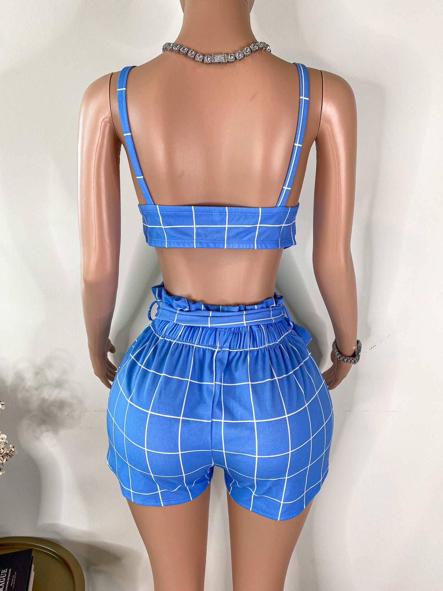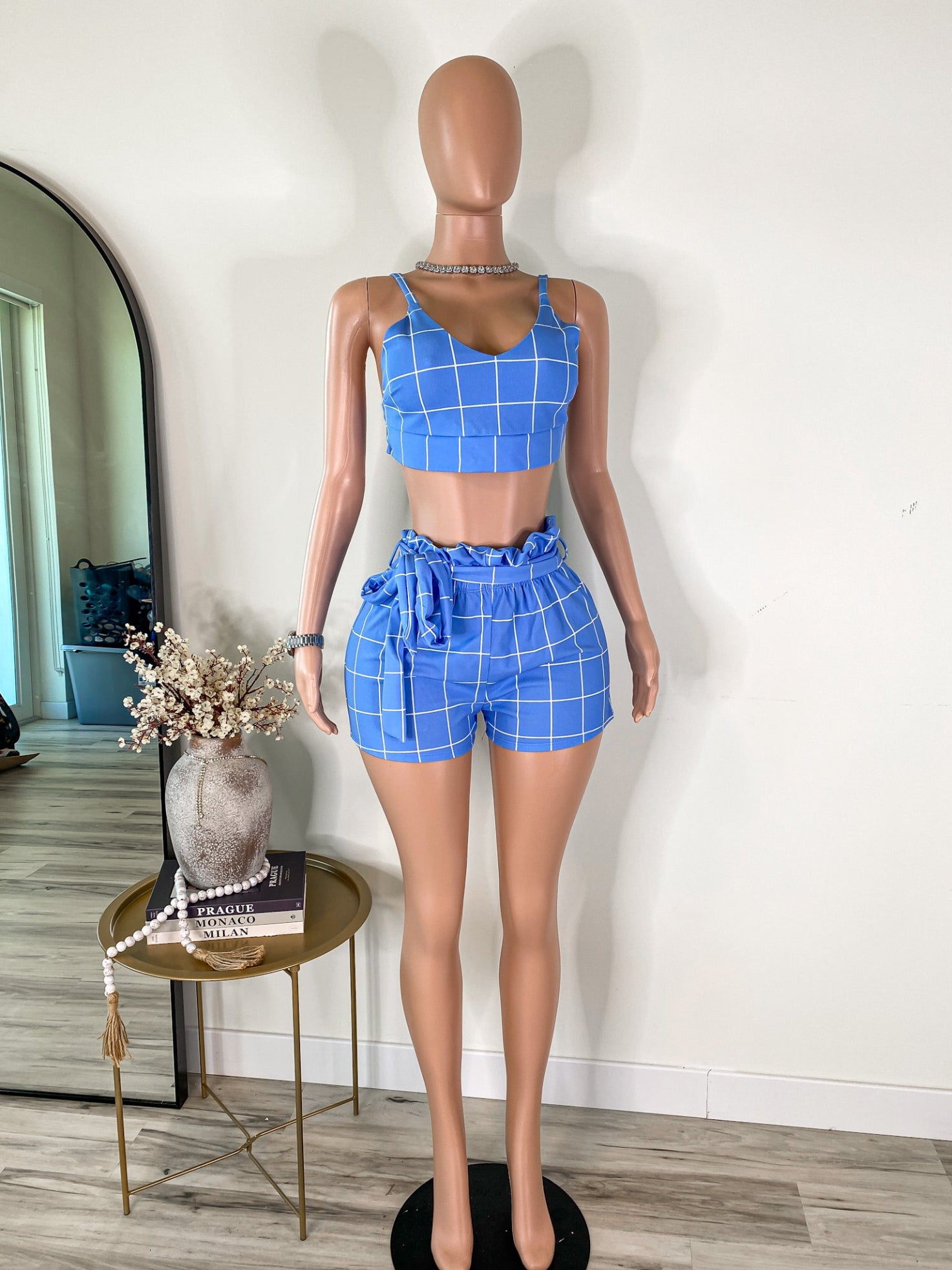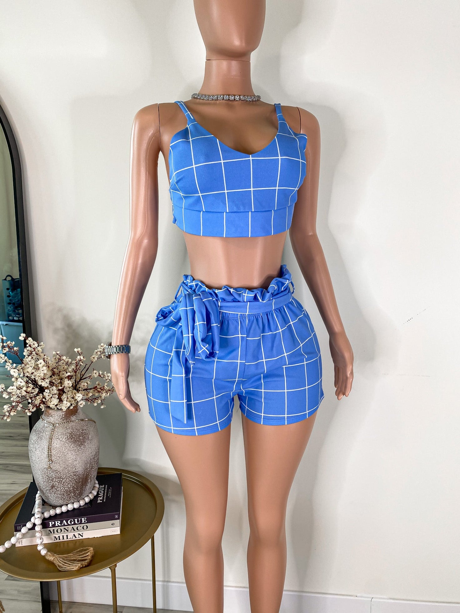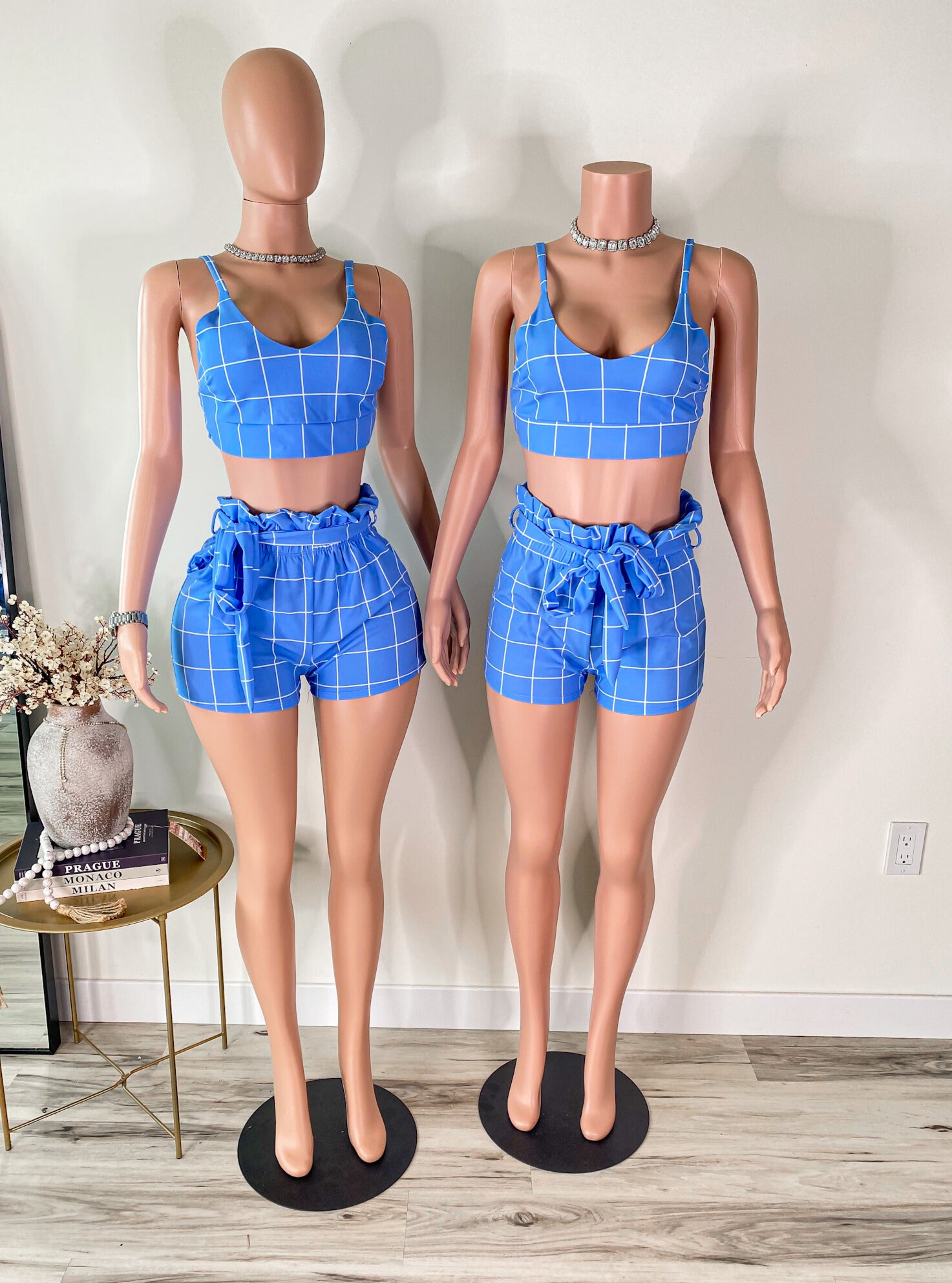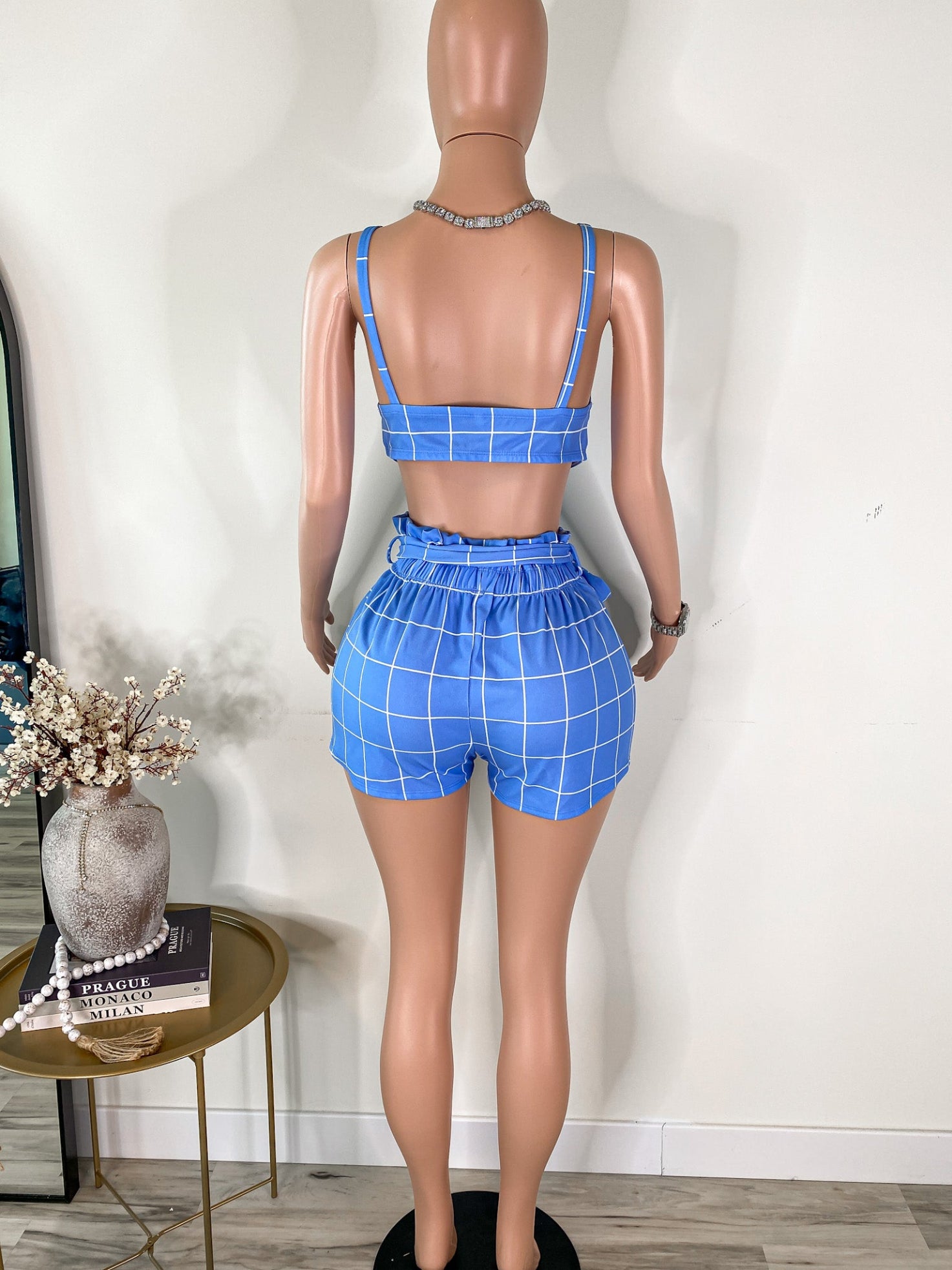 Power Play - Blue Plaid Crop Top & High Waist Shorts Set