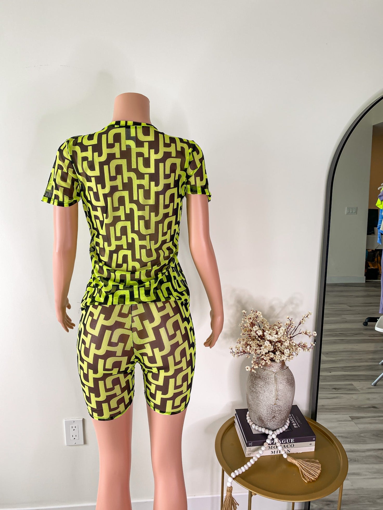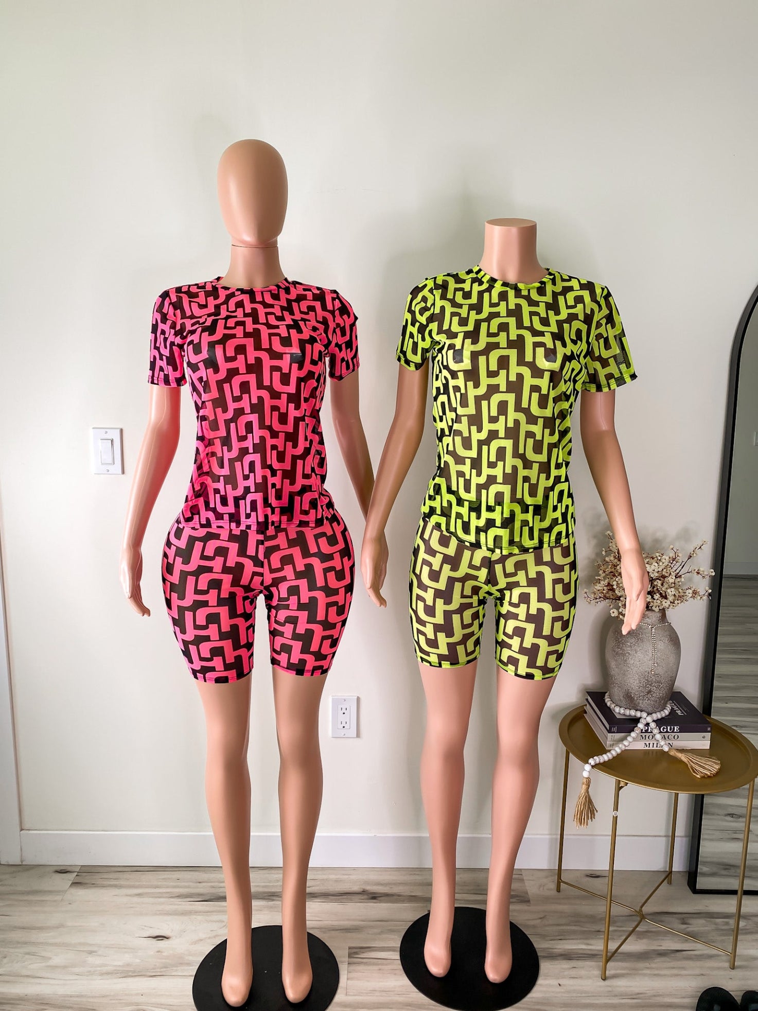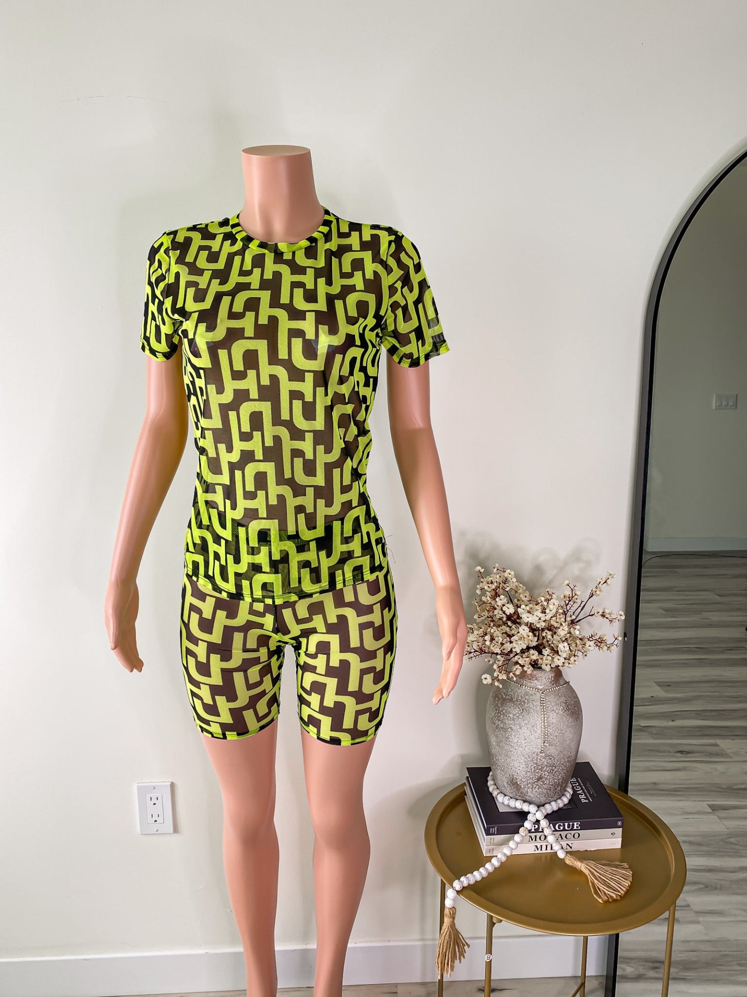 Pattern Play – Neon Mesh Tee & Biker Shorts Set