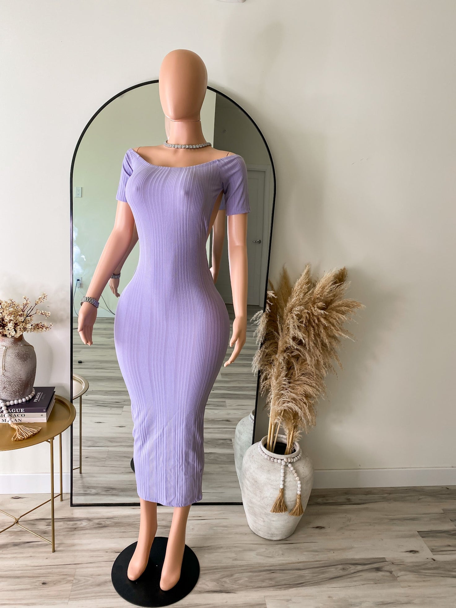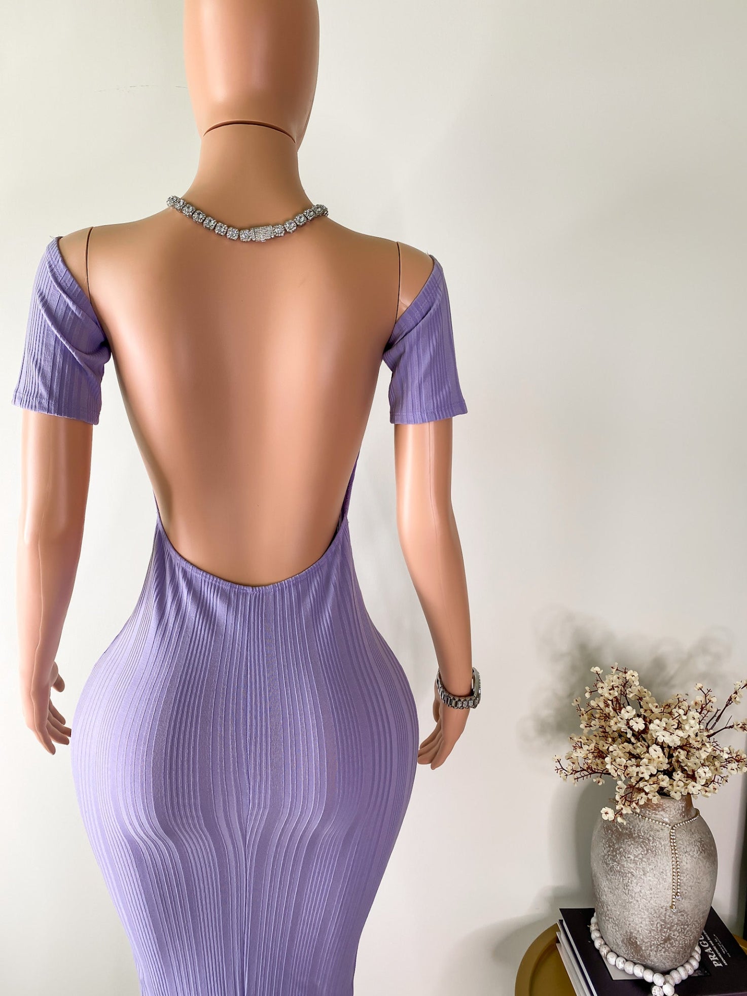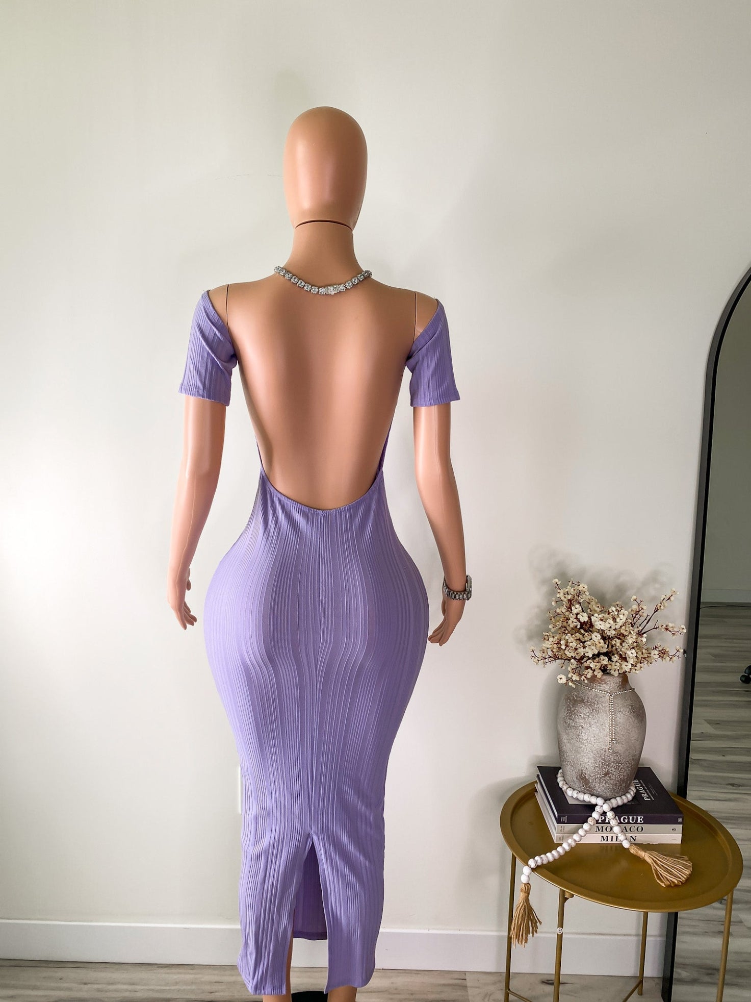 Bare Intentions – Ribbed Backless Midi Dress (Lavender)
