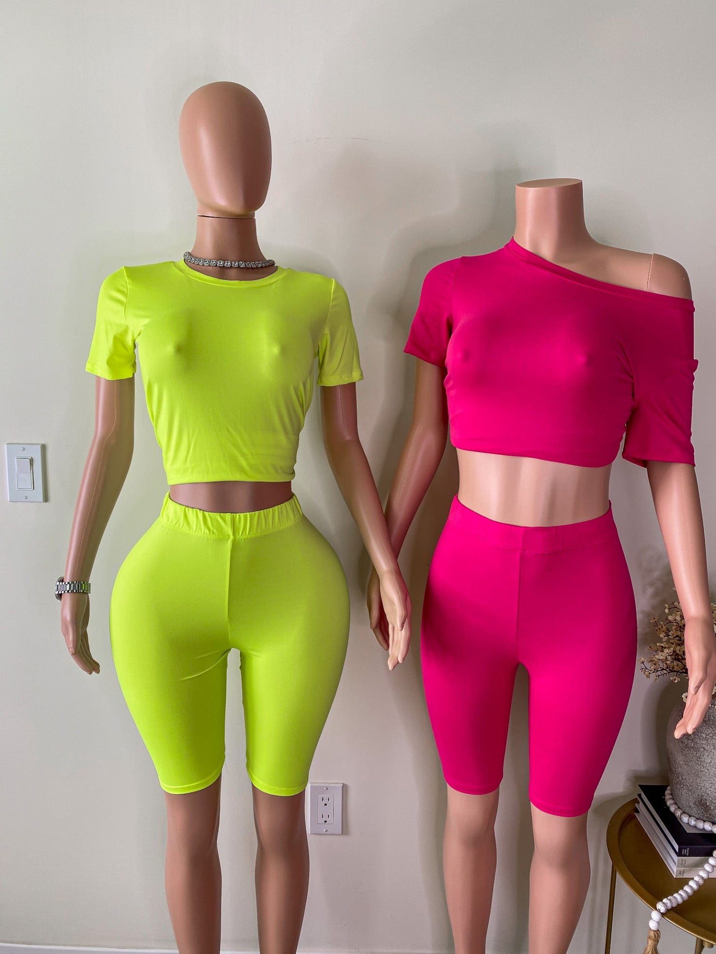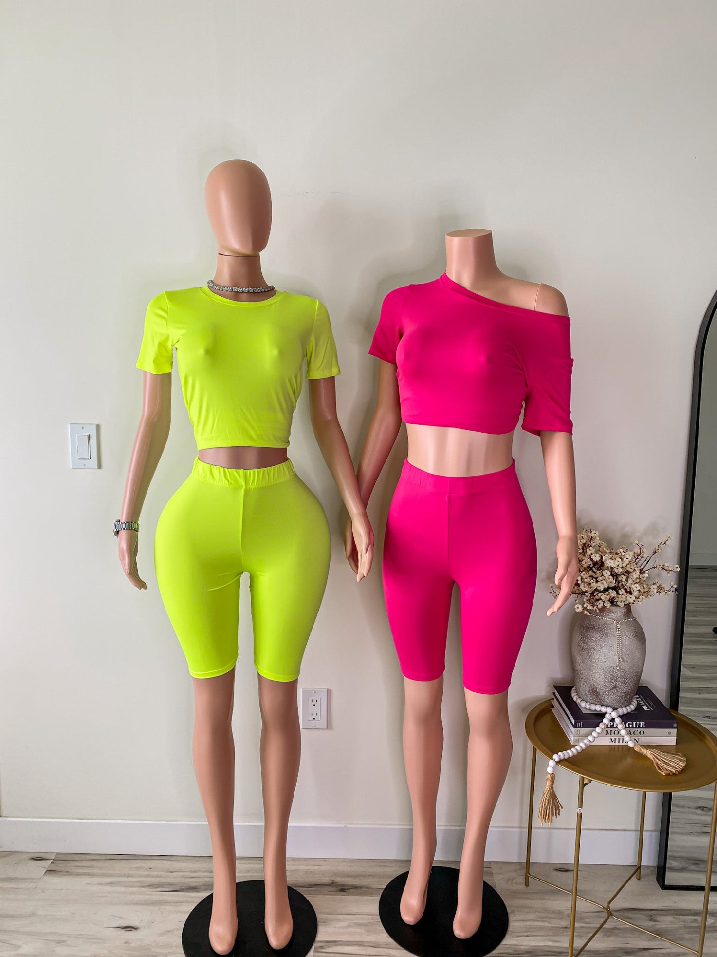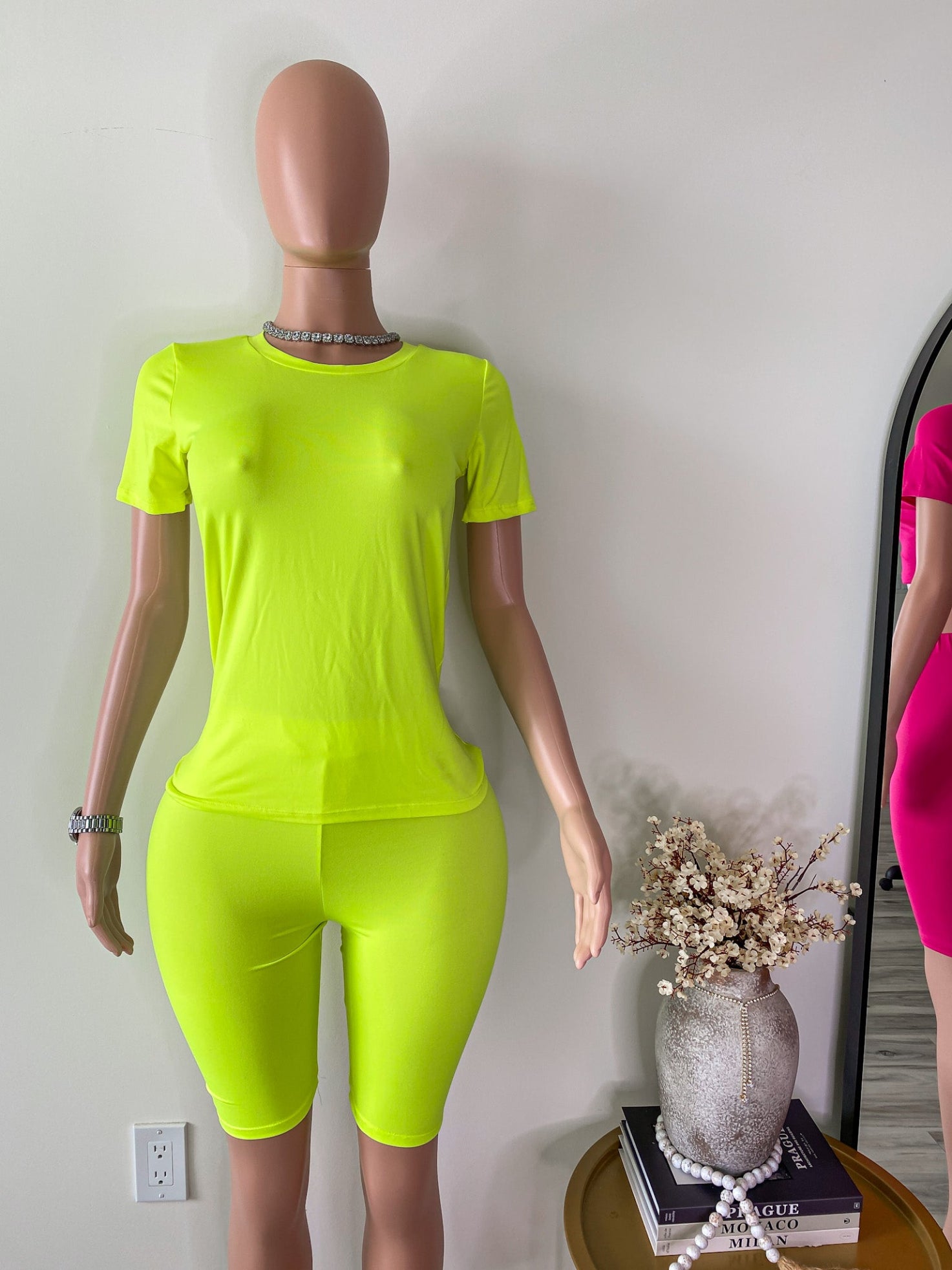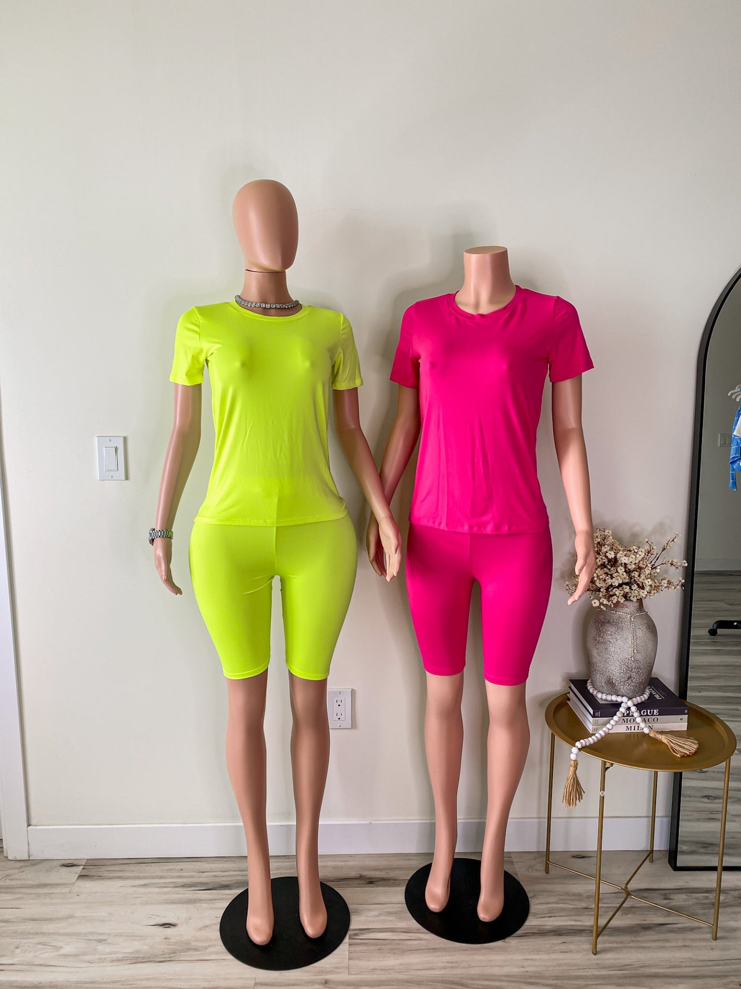 Vivid Motion – Neon Tee & Biker Shorts Set