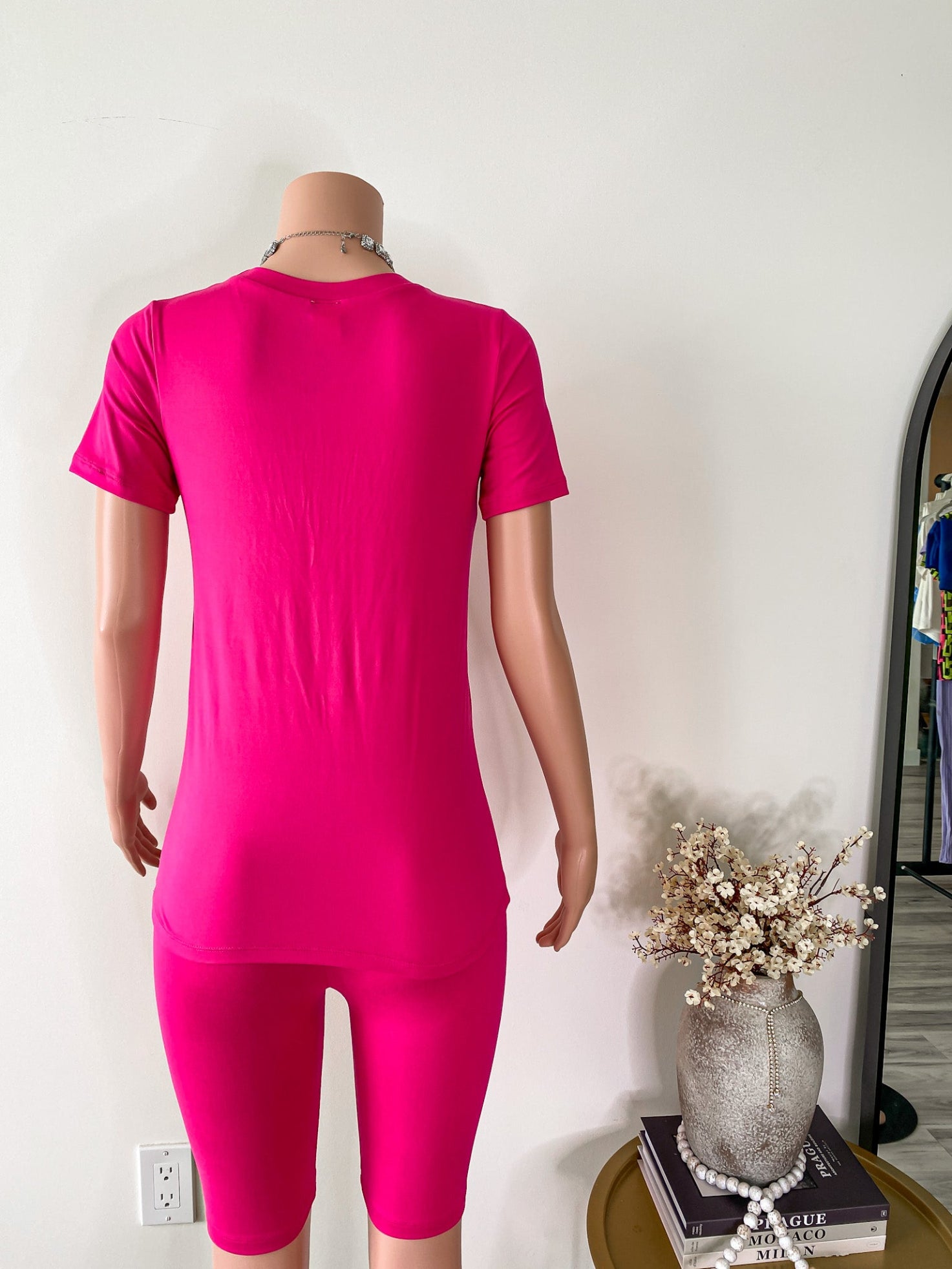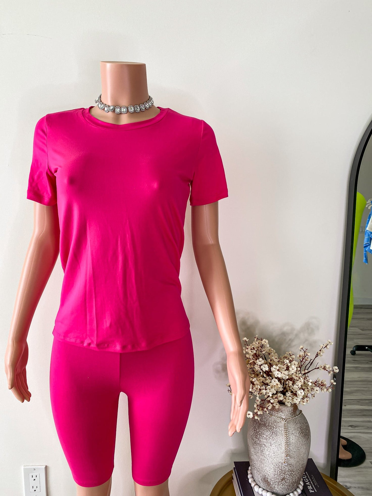 Bold color meets effortless function in Vivid Motion — your no-fuss, all-vibe essential for when you need to move loud and live louder. This two-piece matching set includes a soft-stretch crewneck tee and high-waisted biker shorts that hug you in all the right places. Whether you're hitting the gym, the grocery store, or the ‘Gram, this fit’s got you covered in comfort and color.